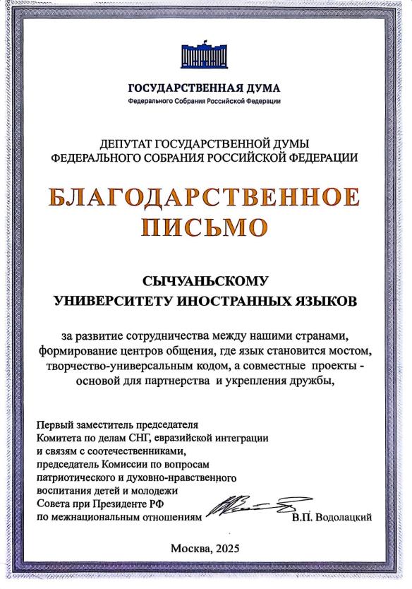 Dankesschreiben von der Staatsduma der Russischen Förderation